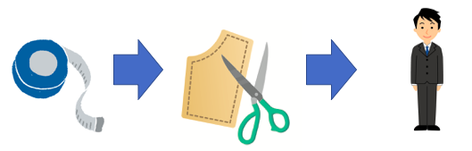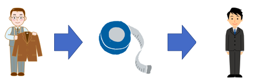 サイズの近いスーツを選び、部分的に寸法し調整していく方法になります。